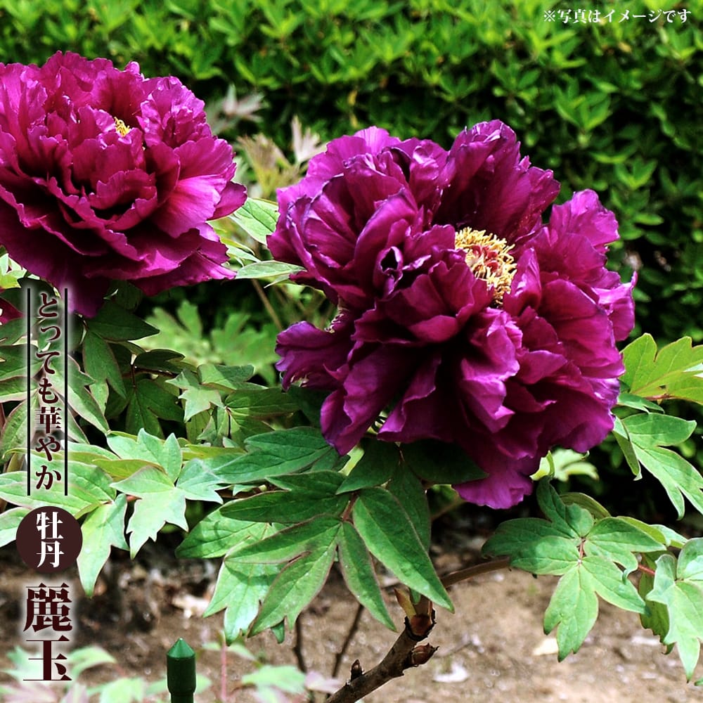「麗玉」は鮮やかな赤紫色の花弁がまぶしい牡丹です。千重咲きでボリュームもありとても華やかです。