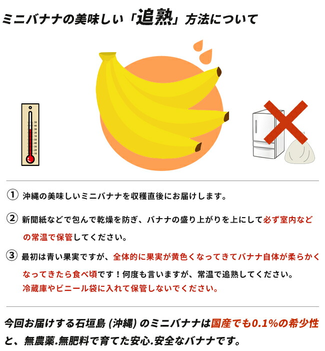 こちらのミニバナナはお届け後すぐにお召し上がりいただけません。