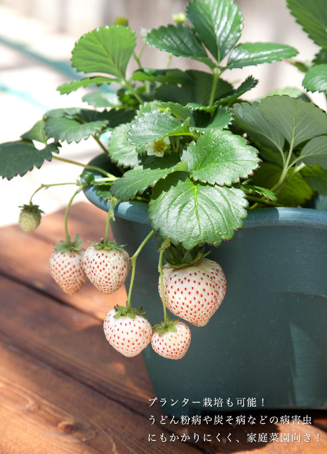 いちごは誰でも簡単に栽培・収穫でき、小スペースでも楽しめることから、近年家庭菜園の主役になりつつあります。そんなイチゴ苗の中でも、ごくわずかな希少品種のみ「白いいちご」が存在することをご存知でしょうか?一度は育ててみたい憧れの「白イチゴ」。この「エンジェルエイト AE」なら、そんなあなたのワガママを叶え、期待に応えてくれることでしょう。