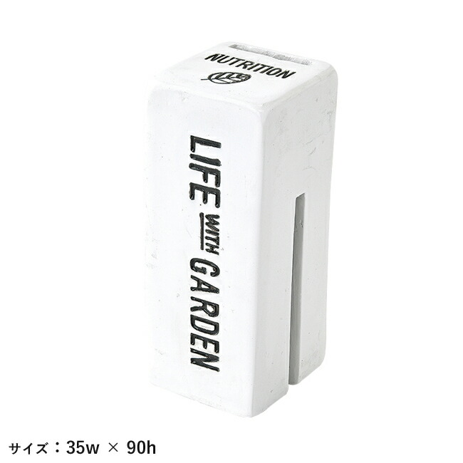 グリーンを育てるメッセージが入った栄養剤カバーです。上部には園芸ラベルが挿せる穴が開いていて植物の管理もしやすく、さらに栄養剤の残量がわかる小窓付きなので交換のタイミングが分かりやすい!栄養剤を使わない時も、オブジェとしてプランターに飾っても素敵です。