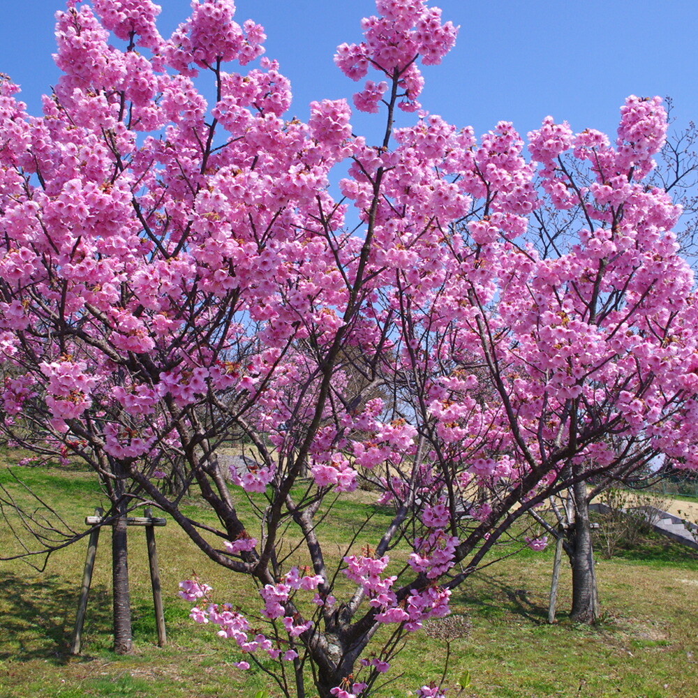 高岡正明氏によって天城吉野(アマギヨシノ)と寒緋桜を交配して作出されました。