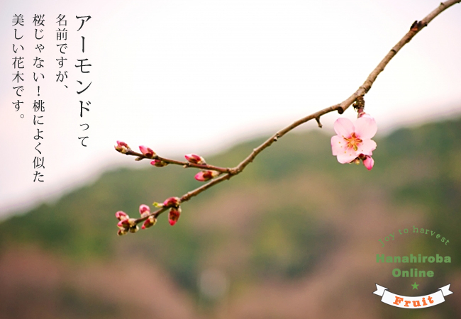 アーモンドは花と実が美しく、庭木向け。果肉は薄く、熟せば開裂するので、中の種を炒って食用にします。