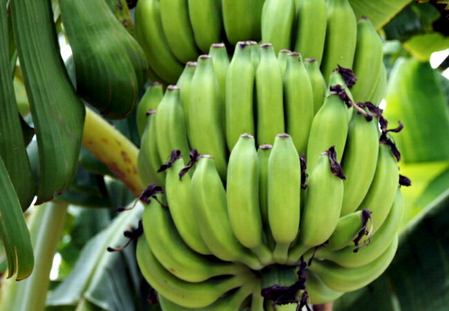 一般のバナナと違い、やや青みがかった酸味のあるうちが食べごろです。