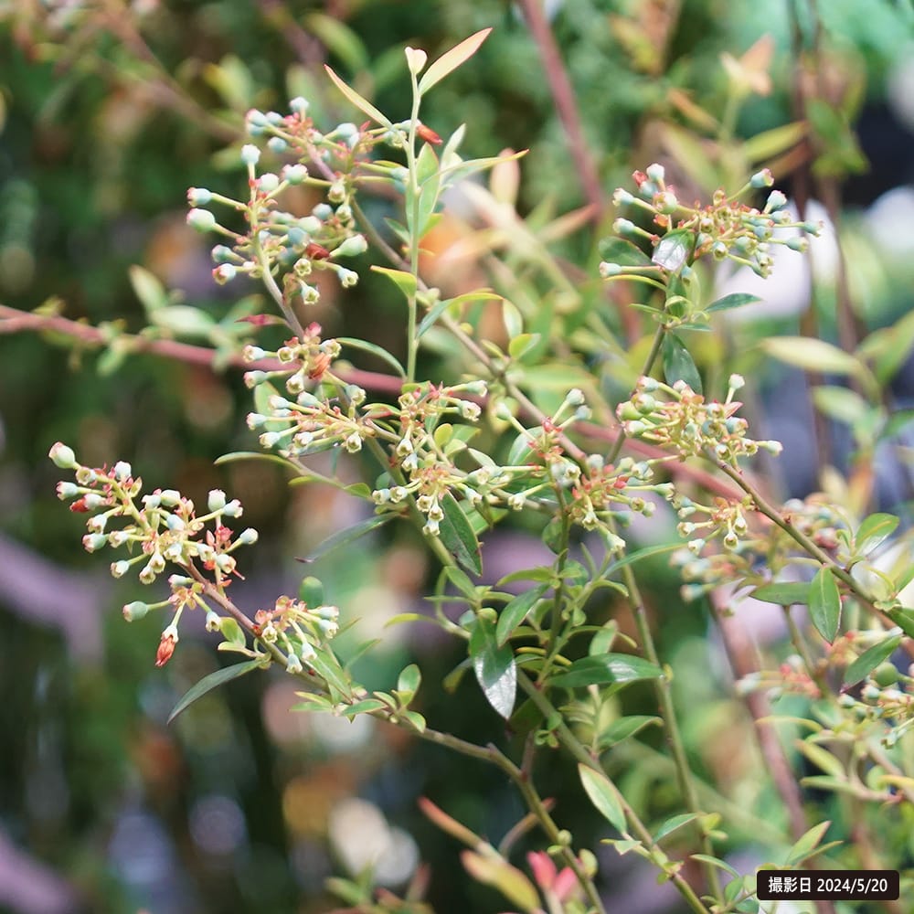 伸びてくる新梢の先端部分の葉腋に6~8月に花芽だけができます。1花芽に5~10花咲いて肥大して鈴なりになります。若木のうちはならせすぎに注意です。