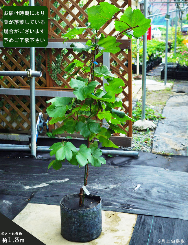 棚仕立てが一般的ですが、フェンス仕立てやあんどん仕立てなど工夫次第で小さな場所でも楽しめます。棚仕立てで広く育てると1本の苗木で300房以上の収穫も可能です。手間をかければいい果実ができ、おなか一杯の収穫が待っています。