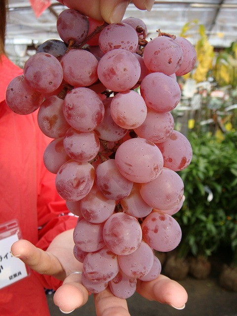 比較的病気に強く、果皮は厚く裂果しません。育てやすい初心者向け品種です。粒が適度にしか付かないので、房作りや摘粒不要で、摘粒しなくてもどうぞこうぞ実ります。果皮が強いのでほとんど裂果もしません。脱粒性はなく、貯蔵性もあり、輸送性も最強。