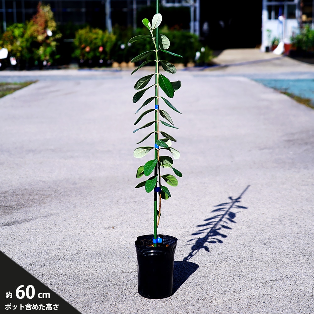 熱帯果樹には珍しく-10℃ほどまでの耐寒性がありますが、-5度以下だと落葉が多くなります。病害虫や乾燥にはかなりの耐性はありますが、環境が悪いと結実しないこともあります。樹高はほとんどの改良品種では約3mほどに収まり、樹形も整えやすいですがやや成長が遅いです。卵型の葉は表は濃緑で裏は銀色、もしくは白色をしています。葉にはところどころ赤紫~黒のシミ模様が出ることがありますが、病気ではありません。