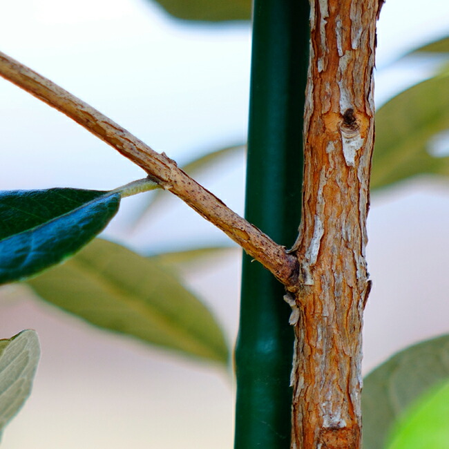 熱帯果樹には珍しく-10℃ほどまでの耐寒性がありますが、-5度以下だと落葉が多くなります。病害虫や乾燥にはかなりの耐性はありますが、環境が悪いと結実しないこともあります。樹高はほとんどの改良品種では約3mほどに収まり、樹形も整えやすいですがやや成長が遅いです。卵型の葉は表は濃緑で裏は銀色、もしくは白色をしています。葉にはところどころ赤紫~黒のシミ模様が出ることがありますが、病気ではありません。