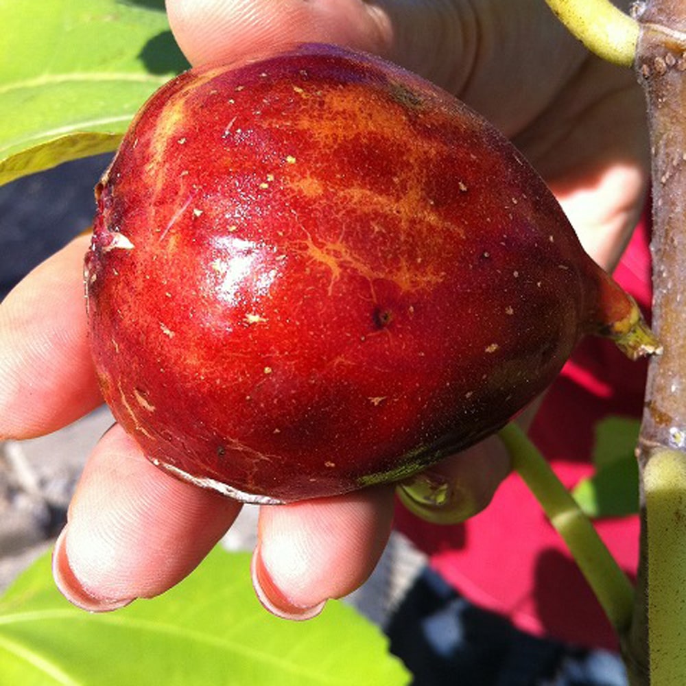 夏秋兼果で収穫期間が長く、豊産性です。夏果(熟期は6月~7月)は、大きいもので220gにもなる大果が実ります。秋果(熟期は8月~10月)は、80~100g程度と小ぶりながら糖度が増します。甘味が強く、酸味もほどよく品質の良いイチジクです。冷やして食べると美味しいですよ。平均糖度は11~19度ですがドーフィンでも糖度が30度出たと見聞きしたことがあります。