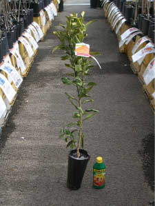 1年生のは将来の成長と樹形作りのために主幹を地際から30~40cmの高さで切り戻して植えます。
