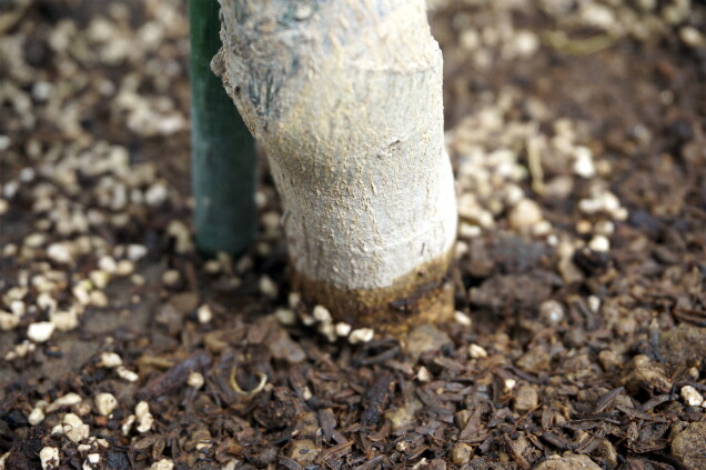 1年生のは将来の成長と樹形作りのために主幹を地際から30~40cmの高さで切り戻して植えます。