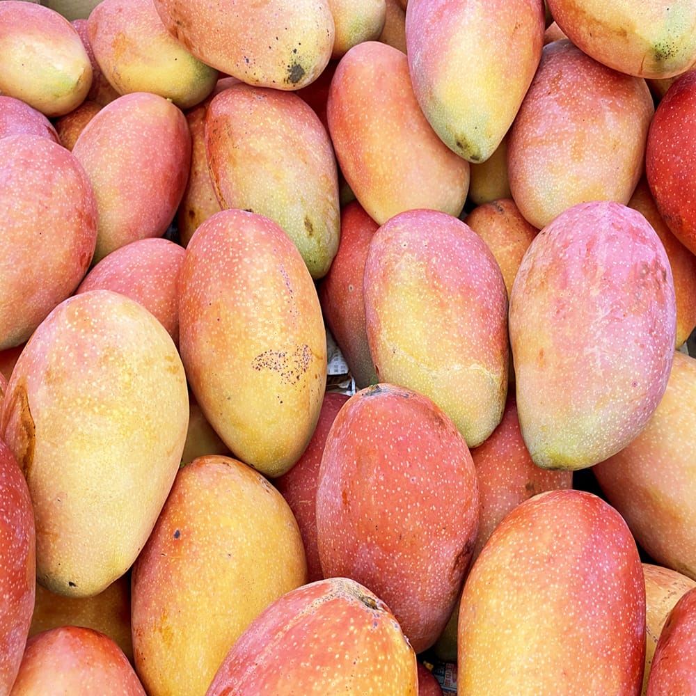 「玉文(ぎょくぶん)」は、キーツや金煌種と比べ日本であまり栽培されていない珍しい品種です。酸味が少なく糖度が20~24度あるとっても甘ーく濃厚な味わいのマンゴー。他のマンゴーと比べ果肉の繊維質が少なく舌あたりが非常に良いのも魅力です。果実は500g~2kgあり、果皮は綺麗な赤色に色づきます。香りが強くなり、果実が少し柔らかくなったら収穫適期です。追熟でもさらに甘くなります。