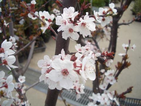 全国どこでも栽培できます。開花が早いので開花期に霜が降りない地域が適してます。梅やアンズと交配します。苗はすべて接木で李台に接木します。