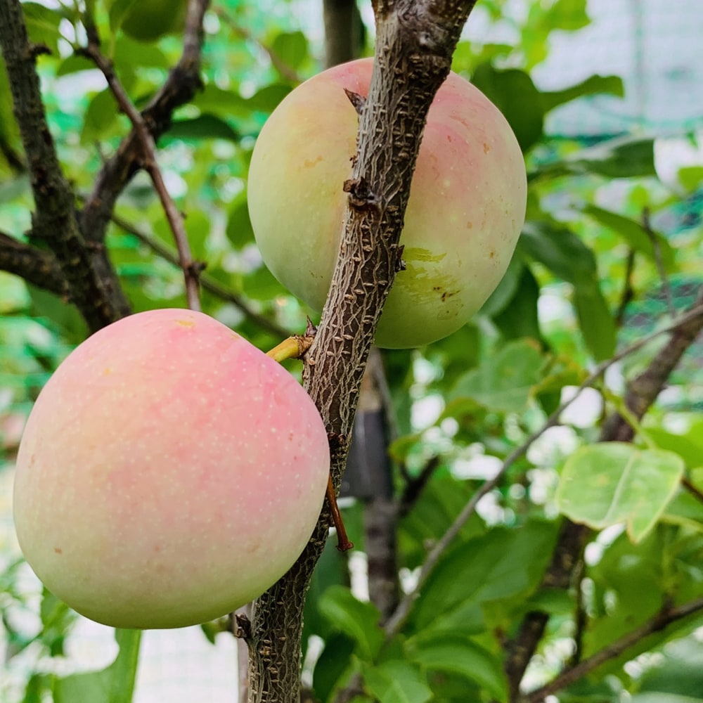 ※スモモはもともと生理落果が50%~70%と高いですが、樹勢が元気でないと更に落果率は高まったり、小果になります。葉が光合成できるように冬はしっかり剪定を行い、内部にまでよく日が当たるようにし、果実の収穫後の9月に礼肥を与えるといいでしょう。