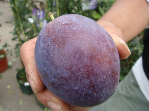 プレジデントはプルーンの中での大玉で、特においしいとされています。果皮は赤紫色で果実は80~100g位と大きく、肉質がよく、やや柔らかめ。糖度は16~17度くらいで高く、甘みも強く、酸味が少なく品質が良い品種です。収穫時期の落果は少なめで裂果も少ないです。