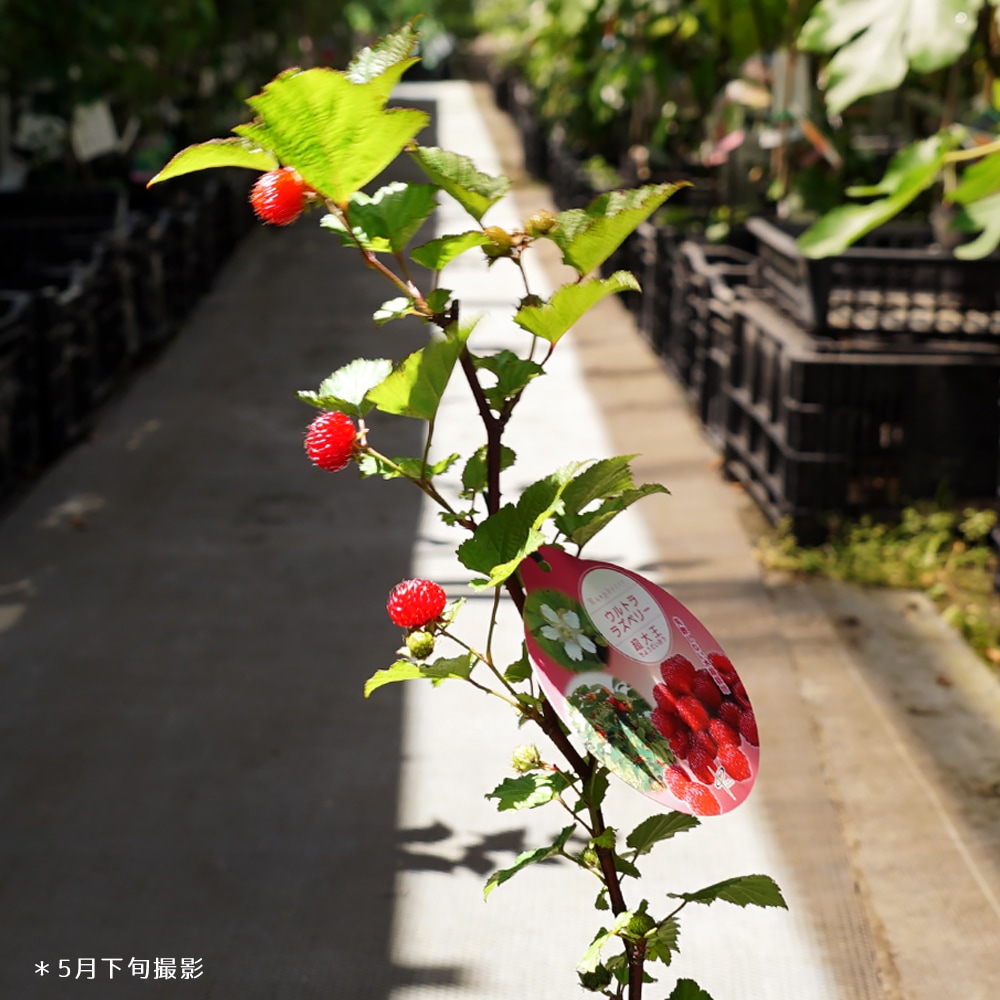 レッドドリームは中国原産の木苺からの選抜種で日本のクマイチゴに似た果実をつけます。ウルトララズベリー「超大王(ちょうだいおう)」という名前でも流通しています。王様を越えている超大王、10円玉サイズの特大果がつくことがあります。