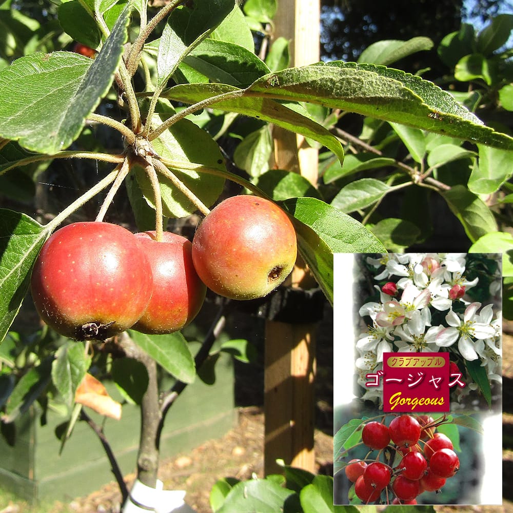 花の綺麗な、小さな実のなるリンゴです。低めにおさまり1本でなります。庭に植えても大体樹高は4~5m、枝張りは2~3mくらいでおさまるので、割とコンパクト。
