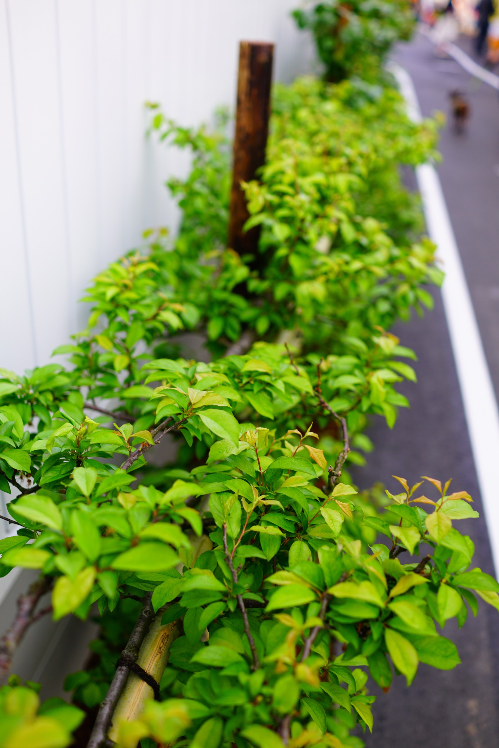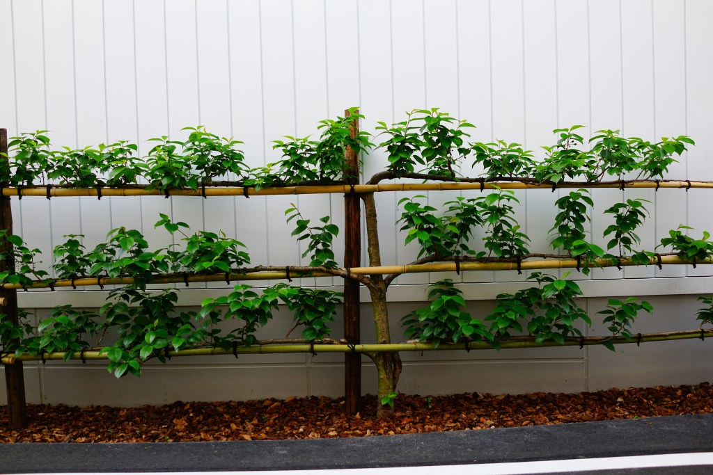 枝を横に伸ばさせて、フェンス仕立てにするのもおしゃれでコンパクトです。