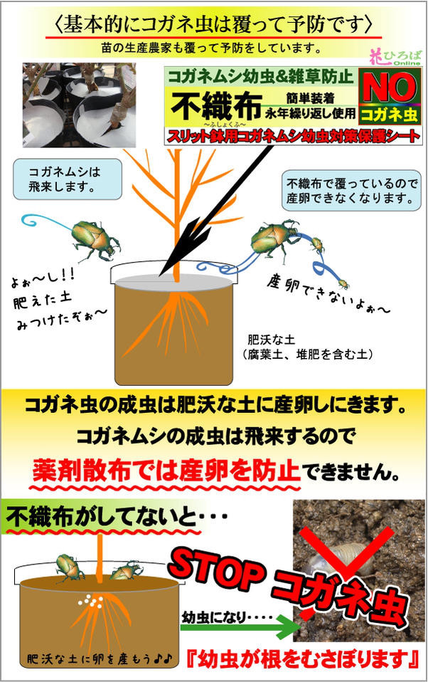 なので、コガネムシに産卵をさせない工夫をお願いします。