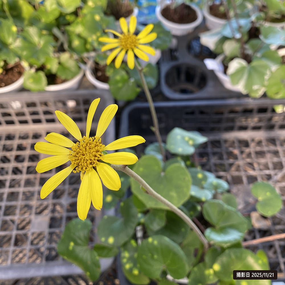 「ツワブキ」はキク科ツワブキ属に属する常緑多年草で、海岸近くの岩場などに生え、初冬に黄色い花を咲かせます。昔から民間薬や食用野草として知られ、若い葉柄が食べられてきました。観賞用に庭園に植えられることもあります。フキノトウは食べられません。