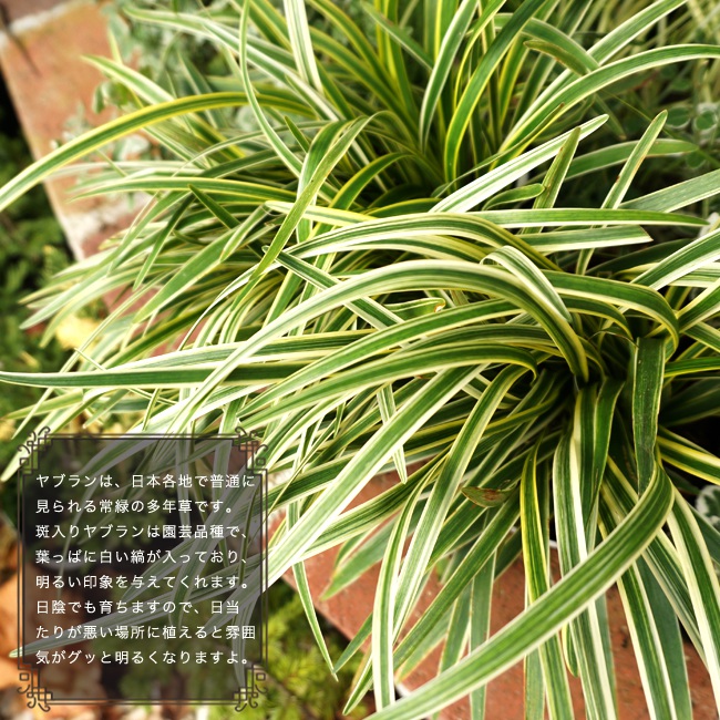 ヤブランは日向から日陰までどこでも育つ、常緑の多年草です。とても丈夫で植えっぱなしでも育ち、病害虫にも強いので、緑化や造園にも広く利用されている植物です。冬になると葉が枯れたりして見栄えが悪くなりますが、春になれば新しい葉が出てきます。3月頃、新芽が出る前に根元から切り戻してあげてください。そうすることで、綺麗な新芽のみの姿を楽しんでいただけます。