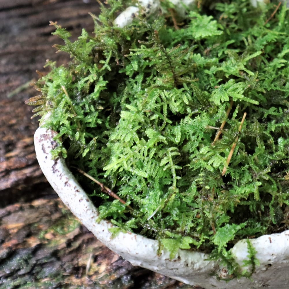 「ハイゴケ」は日本庭園でもよく見かける苔で、日当たり~明るい日陰を好みます。道端、石の上など様々な場所で地面に沿って広がっていき、幅広い環境での生育が可能です。草丈は育っても10cm程度、葉に見える枝葉羽状の形をとっています。丈夫で耐陰性もあり過湿にも耐え、良く茂るので芝生代わりに植えられることもあるそうです。手軽に始められる苔栽培の入門品種です。