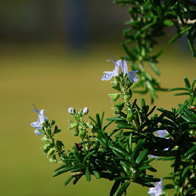 ローズマリーは香りの素敵な低木です。日向~日陰で植え付けが可能、土質を選ばず、ほったらかしで大株になります。育てやすく、ほぼ年中収穫できるので万人に愛される代表的な人気のハーブです。キッチンガーデンやボーダーにおすすめで、細い小さな葉はあふれるほどの香りを持ちます。冬も変わらぬ緑と、すがすがしい香りだけでなく、小さな蕾をびっしりつけてくれます。花は秋に小さなかわいい花を咲かせます。夏が終わったことを知らせてくれる花です。花の大きさは1cmほどの小さなものですが、たくさん穂状につきます。花は秋~春まで満開に咲き続けます。葉は、乾燥保存しておくと香りも飛ばずに長期間保存が可能です。主に肉料理のにおい消しなどに利用されますが、精神安定作用もありますので、入浴剤などにも利用することがあります 大変丈夫で特に世話をしなくてもどんどん育ちますので、垣根にも利用することができます。