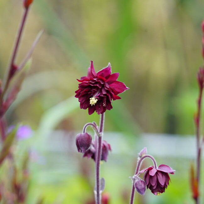 アクイレギア ルビーポートは、ワインレッド色をした八重の小花を咲かせるキンポウゲ科の宿根草です。