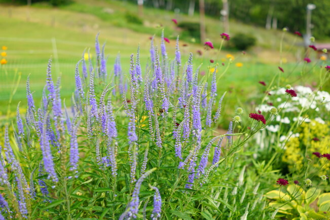宿根草花壇で咲くベロニカ ハミングバードブルー