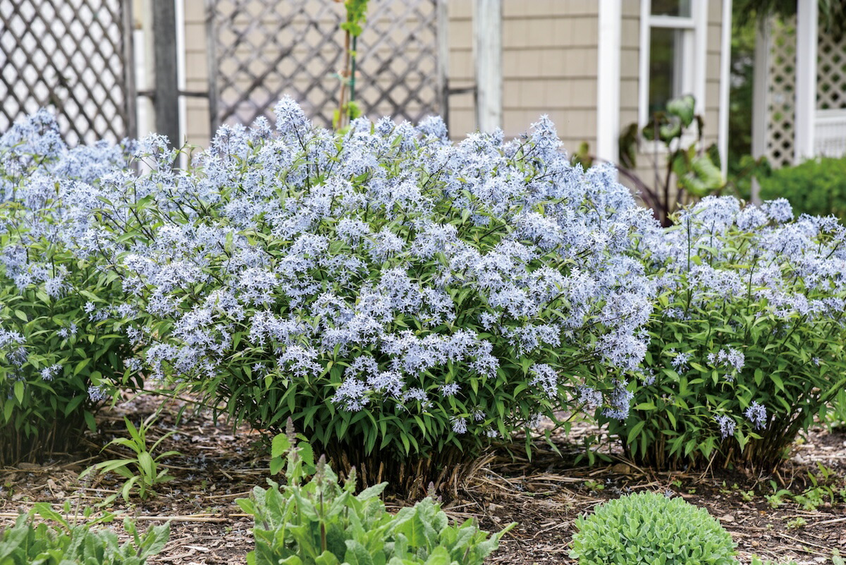 「ストームクラウド」はアメリカ東部原産のブラックステムが美しいアムソニアです。分岐性に優れ、春になると株いっぱいにアイスブルーの星形の小花が一斉に咲き誇ります。その花姿は満天の星空のようで春のお庭を可愛らしく彩ります。