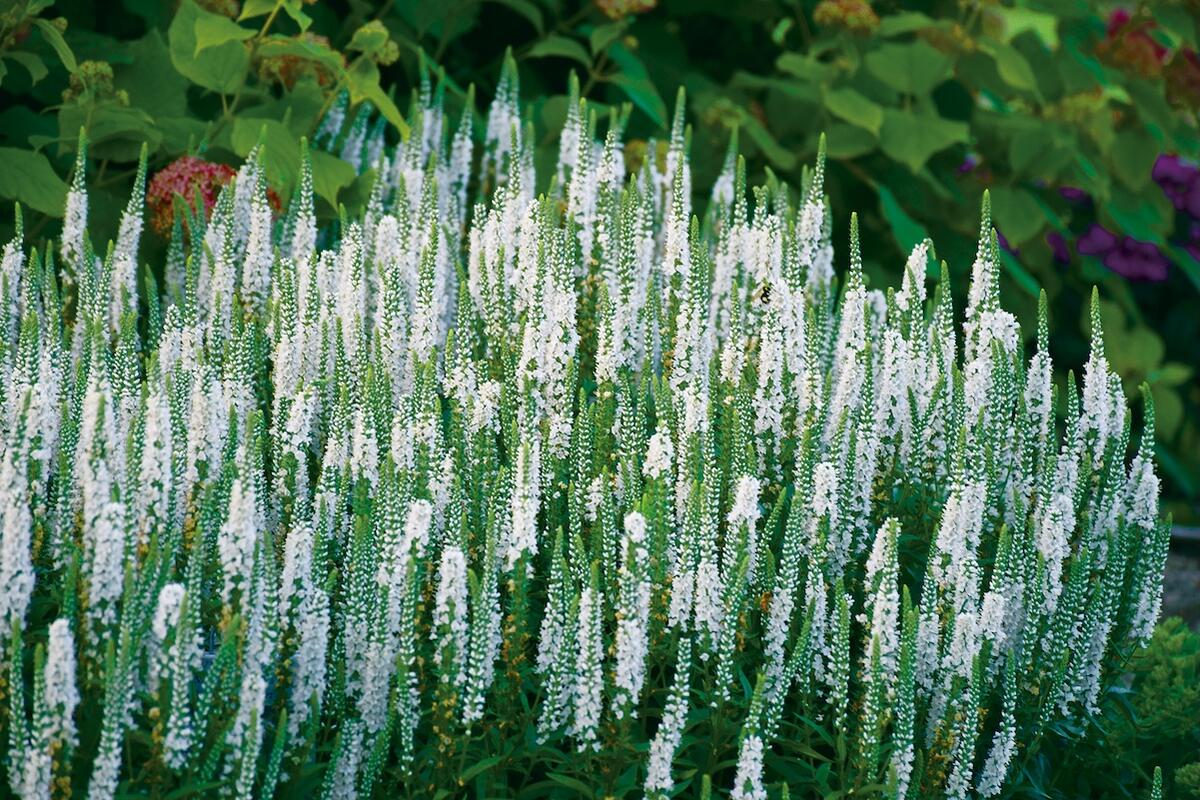 「ホワイトワンズ」はベロニカ ウィザーディングの中で、最も開花時期が長く、純白の花が霜が降りる頃まで咲き続けます。初夏の切り戻しをした場合でも、「ホワイトワンズ」はベロニカ ウィザーディングの中でもっとも返り咲き性も優れています。