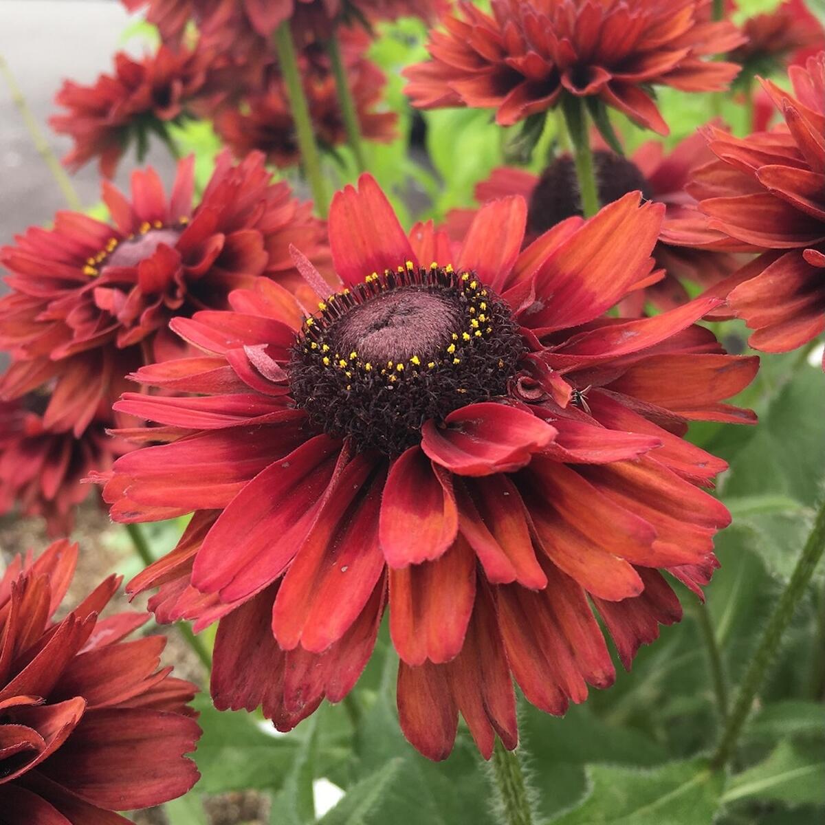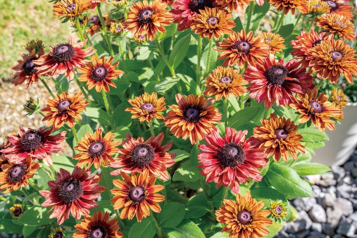 「キャニオンレッド」は峡谷の赤い岩を連想するブラウンレッドのグラデーションの花弁を持つルドベキアです。日当たり・肥料・温度などの栽培環境によってはブラウンイエローが強い花が咲くこともあります。