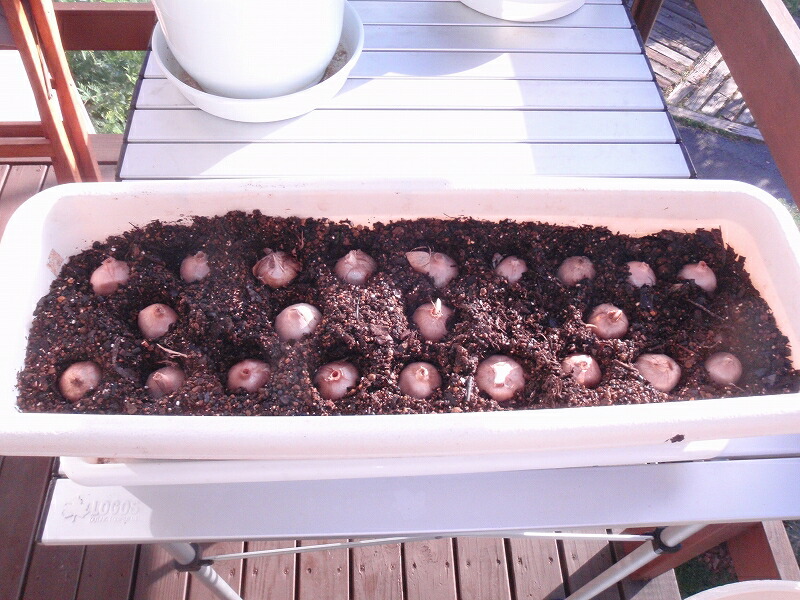 8月から9月に球根を植えつけます。この時期を過ぎてしまうと花が小さくなってしまうことがあります。鉢植えでは5号鉢に5~6球とし、植付けの深さの目安は鉢植えでは球根1~2個分くらいです。地植えでは10cm間隔で植え、球根2~3個分くらいの深さに植えつけます。浅く植え付けると花付きが悪くなってしまうので深さには注意してください。