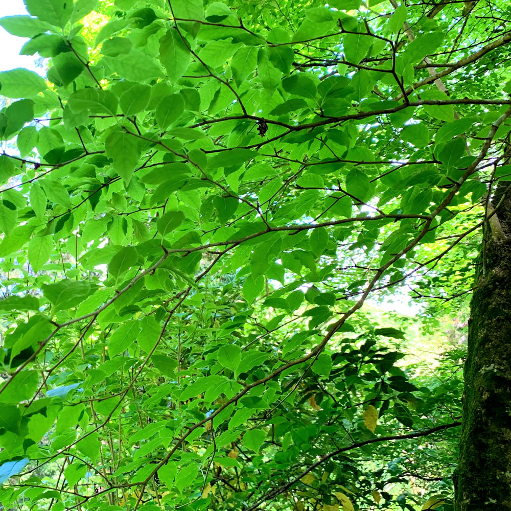 パッと見、なんの変哲もない、大きな特徴もないように見えますが、自然樹形が美しい「アオハダ」は生産者が少なく、非常に珍しい木です。なので、他の植物たちに比べて高値で取引される高級な木で、その品の良さもあります。幹肌は灰褐色ですが、樹皮が薄くて皮を削ぐと内部が青緑色をしているため、「アオハダ」という名前がつきました。5月から6月ころに、目立たないですが白色から緑色の小さな花を咲かせます。葉は緑色で柔らかく、秋には黄色く黄葉し美しいです。樹高は10m前後まで大きくなりますが、成長が遅く、また剪定を繰り返していただけば、お好みの樹高で管理もできます。剪定をせずに育てても、自然と樹形が整います。
