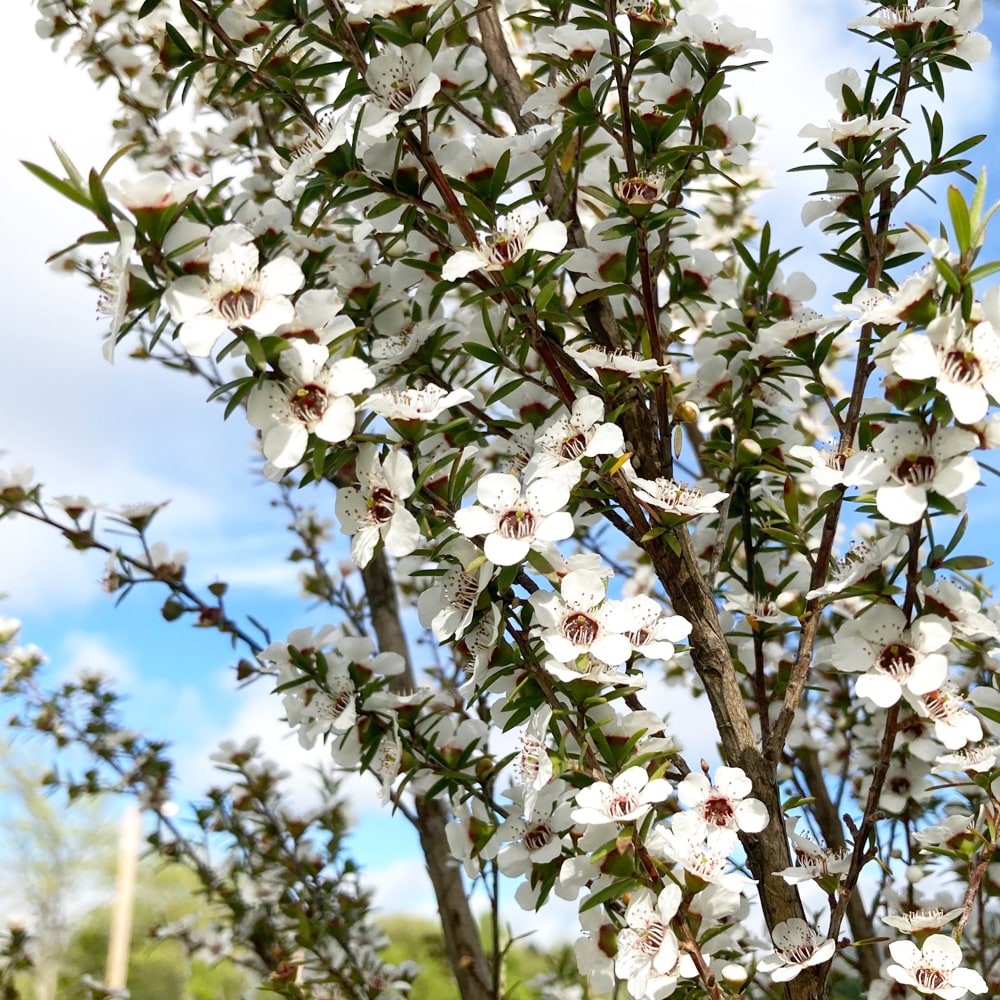 レプトスペルマムは別名“ギョリュウバイ”とも呼ばれ、ギョリュウのように小さな葉を持ち、梅に似た花を咲かせることに由来していますが、ウメとは別物です。ギョリュウバイはニュージーランドではマオリ語でマヌカ(Manuka)と呼ばれ、葉をお茶として利用する他、蜂蜜はマヌカハニーと呼ばれ世界に広く知られています。