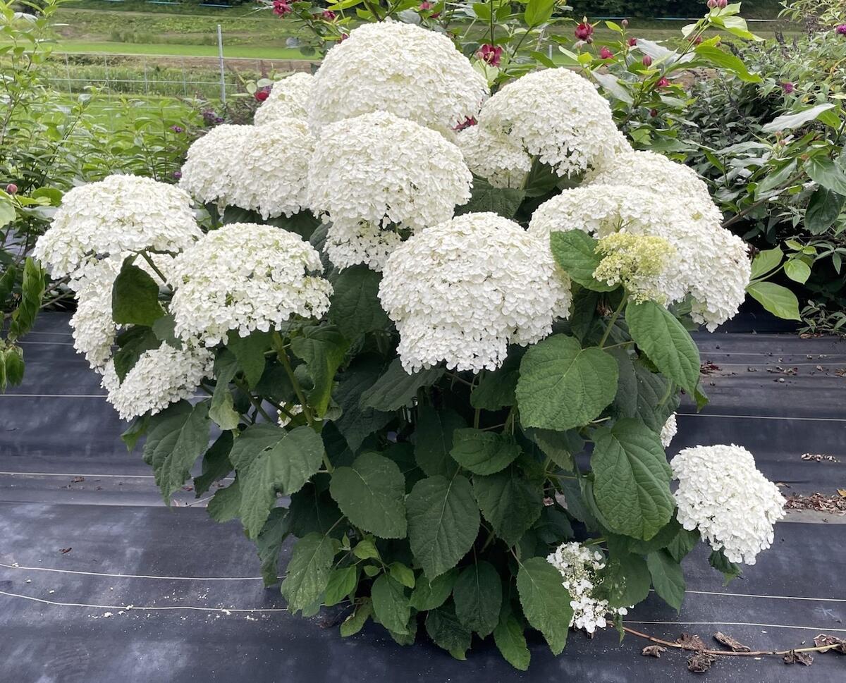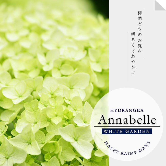 アメリカあじさい アナベルの大輪改良品種 (旧名:インクレディボール、ジャンボアナベル)。直径30cmにもなる手毬型の大きな花が特徴で、花付きも抜群です。繰り返し咲くように改良されたアナベルです。
