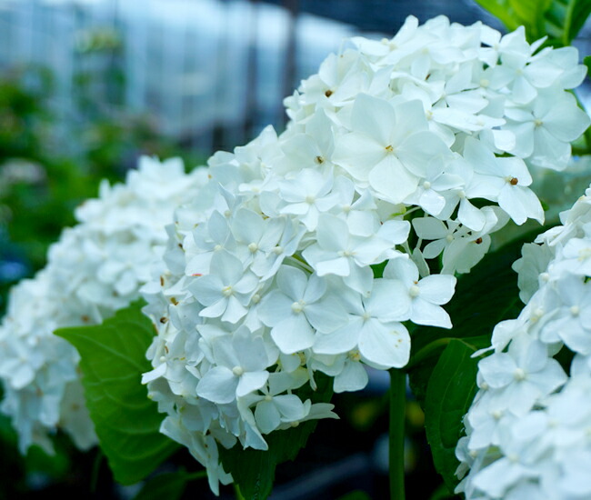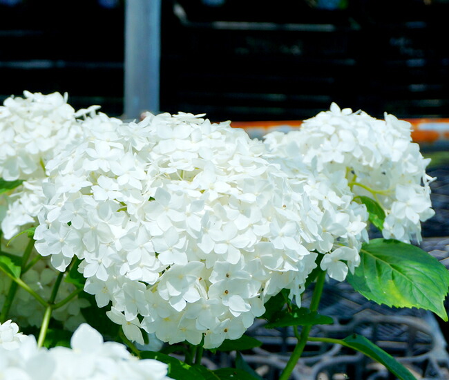 アナベルににた白の大きな花房のアジサイです。アナベルよりも大きめの花が咲き、大きいものでは30cm前後の花房をつけます。花の重さに花茎が耐えられないことがあるので、支柱をつけておくと安心です。