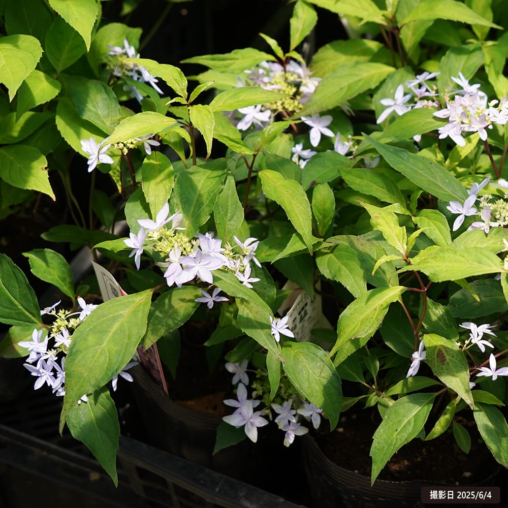 ヤマアジサイは本州では関東より西、また四国、九州などの山地にみられます。湿り気のある山地などに生育しているため、半日陰の環境を好みます。日当たりの良すぎる場所は避けてください。ガクアジサイよりも葉が細く、産毛があり、薄く、光沢がありません。別名”サワアジサイ”とも言います。ヤマアジサイは西洋アジサイに比べ生育が比較的遅いことから、病気と思われがちですが、この品種の性質からくるものです。