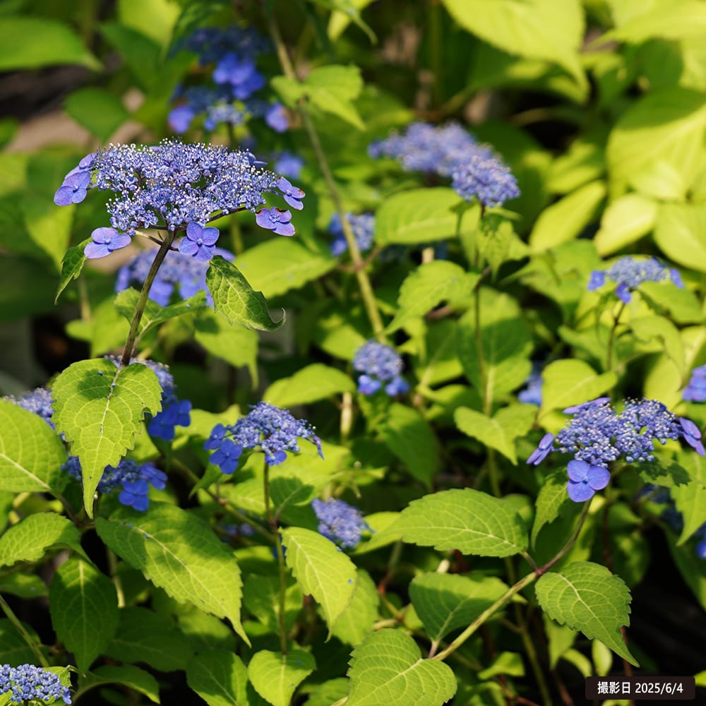 ヤマアジサイは本州では関東より西、また四国、九州などの山地にみられます。湿り気のある山地などに生育しているため、半日陰の環境を好みます。日当たりの良すぎる場所は避けてください。ガクアジサイよりも葉が細く、産毛があり、薄く、光沢がありません。別名”サワアジサイ”とも言います。ヤマアジサイは西洋アジサイに比べ生育が比較的遅いことから、病気と思われがちですが、この品種の性質からくるものです。