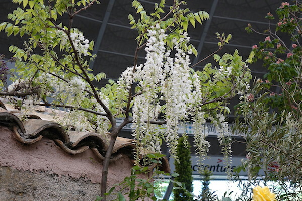 国際ばらとガーデニングショーのコンテストガーデン。白藤 白長藤 木立仕立て