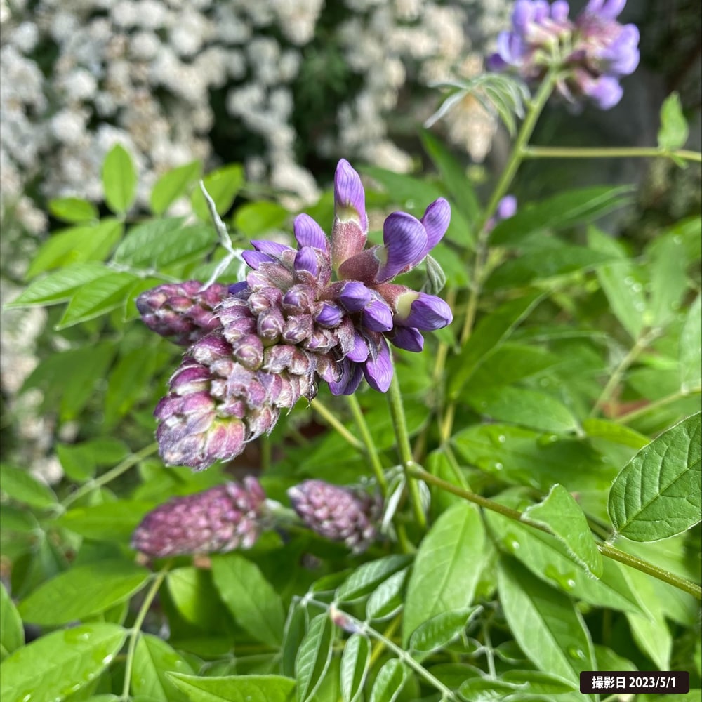 花序は下に長く垂れ下がるのではなく、ぶどうのような花姿です。