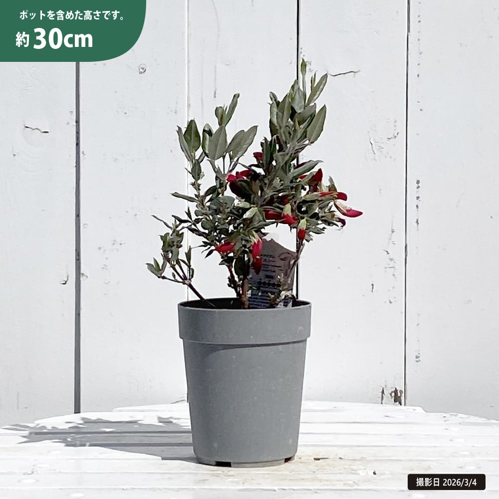 「ガストロロビウム・レッドスタ」ーはオーストラリア西部原産で鳥のくちばし状の真っ赤な花が特徴的な植物です。葉はシルバーリーフで、赤い花とのコントラストが魅力的な品種です。ほふく性で、地を這うように広がる性質があり、刈り込みながら育てると一層密に葉を茂らせます。