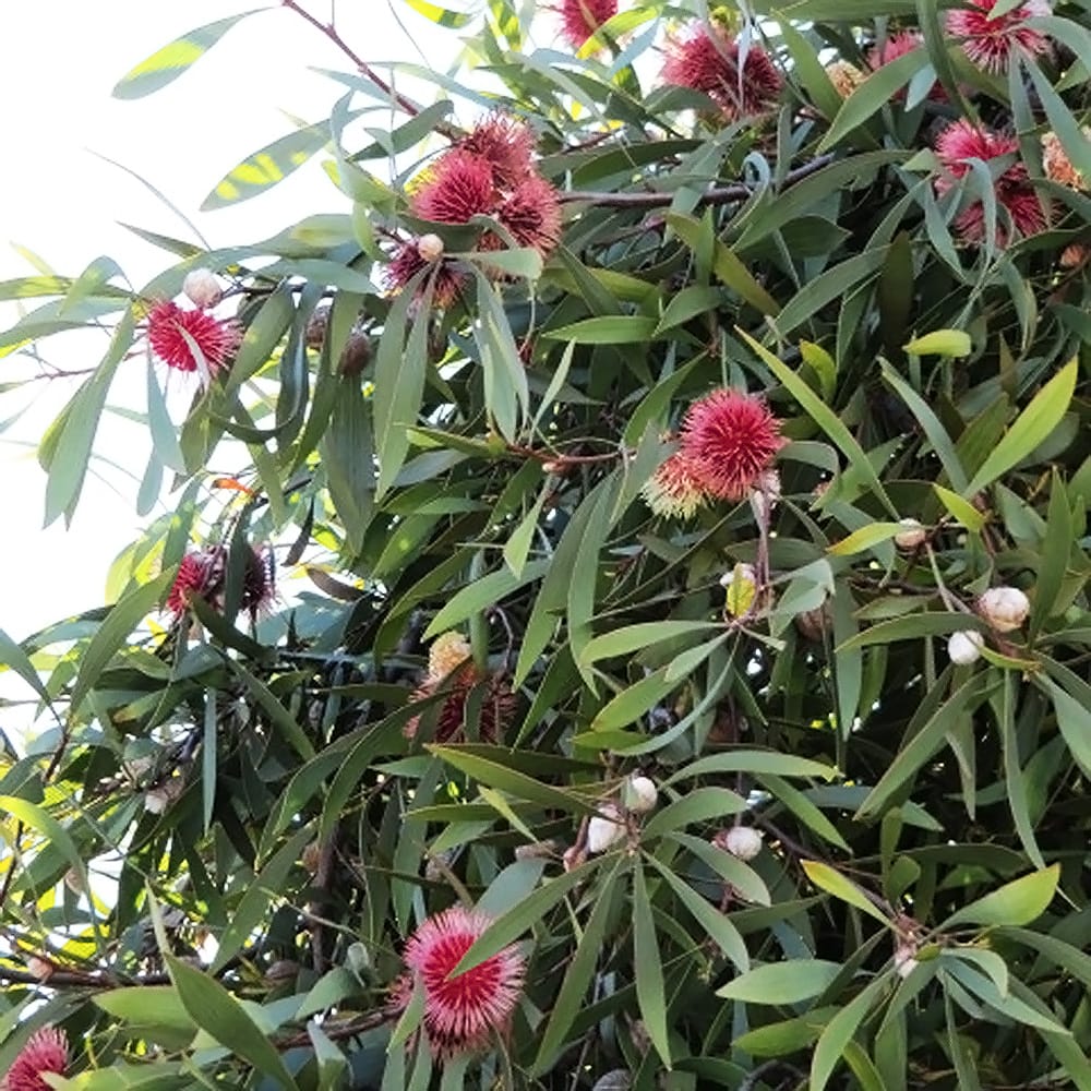 ハケア「ラウリナ」は、オーストラリア南西部固有種のヤマモガシ科の常緑樹です。赤い球状の花序からクリーム色やピンク色をした雌しべがいがぐりの様に飛び出す形をした不思議な花。まるで針山のような形から別名の「ピンクッション」とも呼ばれています。日本の気候環境でも比較的育てやすく、葉も花も切花などにしても面白いのでおすすめです。栽培自体は寒冷地でも可能ですが、関東以北だと寒さで蕾が傷んでしまうようです。