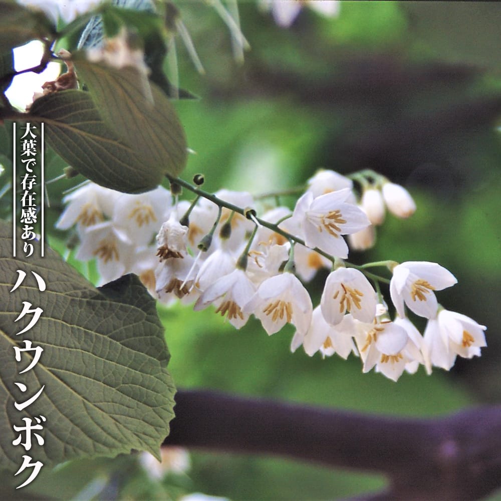 エゴノキ科エゴノキ属のハクウンボク(白雲木)。エゴノキよく似た白い花が咲きますが、一番わかりやすい違いは葉の大きさです。なんと手のひらサイズの葉っぱなんです。別名のオオバシジャは「大葉」が由来になっています。