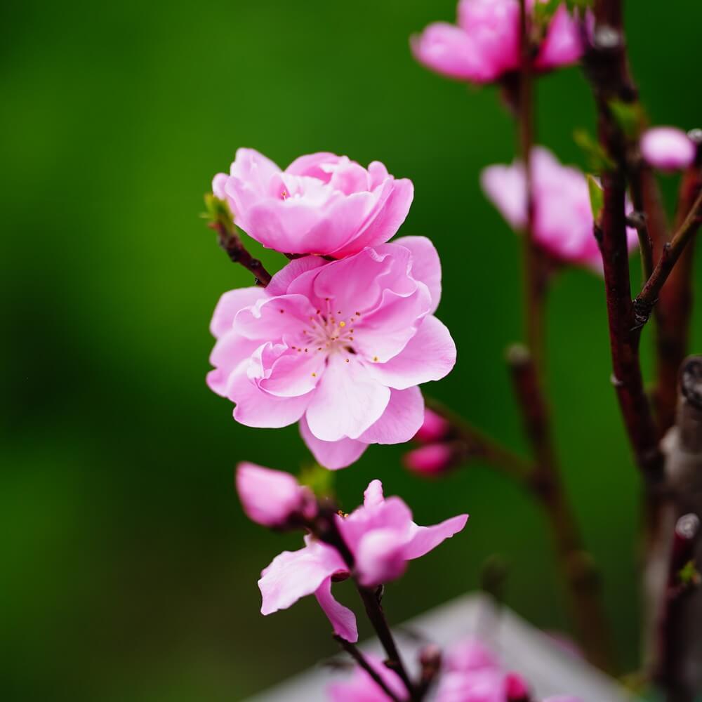 花を楽しむために品種改良された園芸種がハナモモと呼ばれます。 花桃にも実はなりますが小さく、食用には向きません。古来節句のひとつ「上巳(じょうし)の節句」が、桃の花が咲く頃に行われてきたことより後に「桃の節句」となって現代に伝わり、女の子の厄除け、健康祈願、成人のお祝いとして桃の苗木が記念樹、プレゼントとして人気があります。