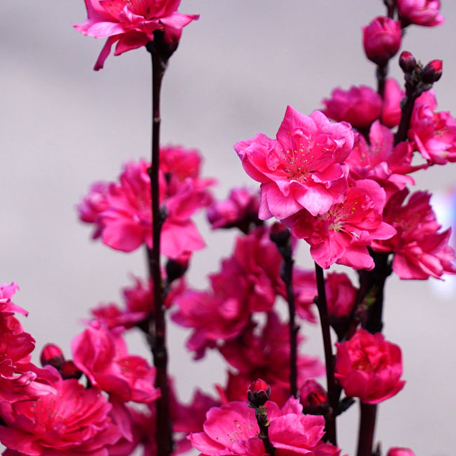 花を楽しむために品種改良された園芸種がハナモモと呼ばれます。 花桃にも実はなりますが小さく、食用には向きません。古来節句のひとつ「上巳(じょうし)の節句」が、桃の花が咲く頃に行われてきたことより後に「桃の節句」となって現代に伝わり、女の子の厄除け、健康祈願、成人のお祝いとして桃の苗木が記念樹、プレゼントとして人気があります。