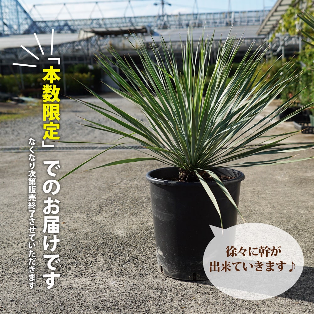50度からマイナス10度の砂漠地帯でも逞しく育つメキシコ原産の丈夫な植物です。シルバーグリーンの綺麗な葉と、育つごとに魅力が増すうろこ状の独特な木肌。大きく育つまでには長い年月が必要ですが、年齢を重ねた幹はシンボルツリーにもぴったりです。