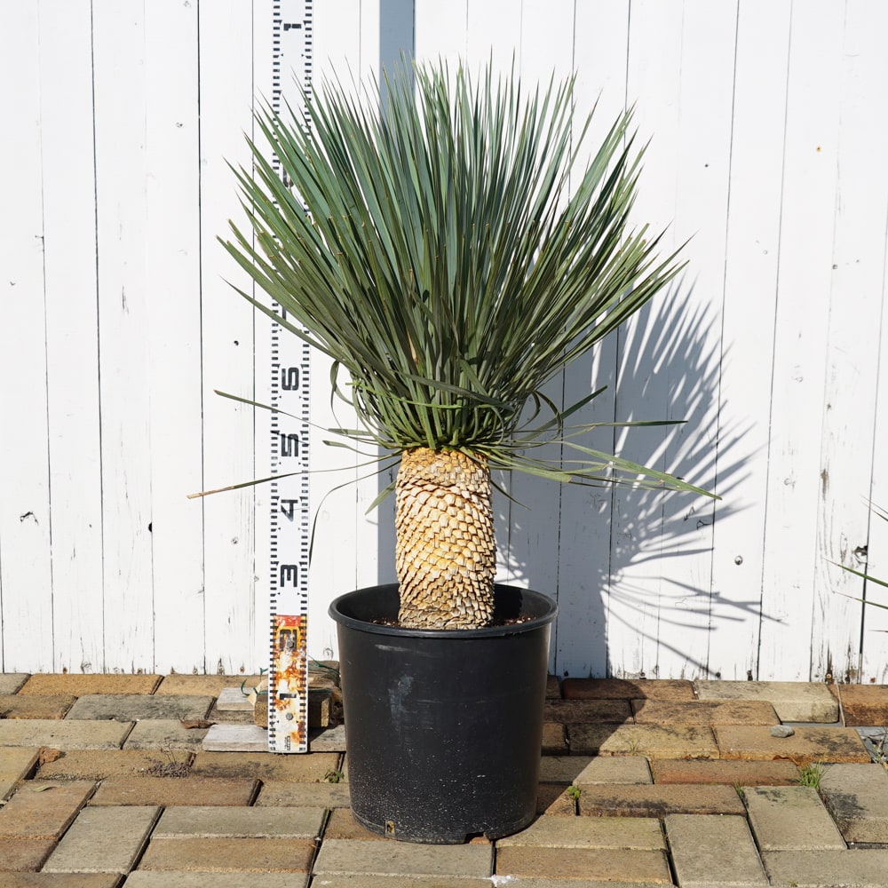 50度からマイナス10度の砂漠地帯でも逞しく育つメキシコ原産の丈夫な植物です。シルバーグリーンの綺麗な葉と、育つごとに魅力が増すうろこ状の独特な木肌。大きく育つまでには長い年月が必要ですが、年齢を重ねた幹はシンボルツリーにもぴったりです。