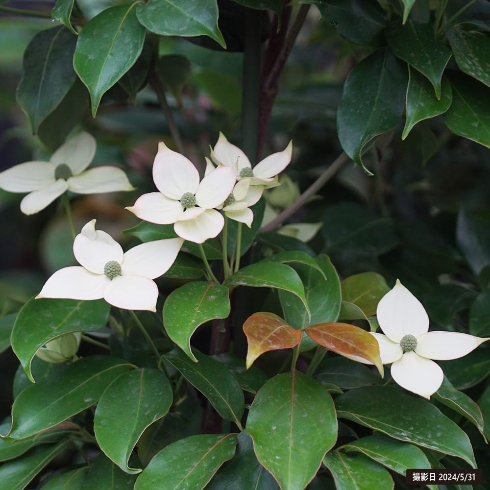 一年中茂る葉は、寒い冬を和らげる彩りとしても魅力的。春には可愛らしい4枚の花をたくさん咲かせます。花のように見える部分は総苞と言って実は葉が変化したものなんです。秋になる実は生で食べて良し、ドライフルーツにしても良し、ジャムや果実酒としても良しで幅広く楽しめます。凍らして食べるのもおいしいらしいです!ただ生で食べる際は、じゃりじゃりするので種は食べないほうがいいみたいですね。また、花言葉は「友情」。卒業の記念樹としてもおすすめします。