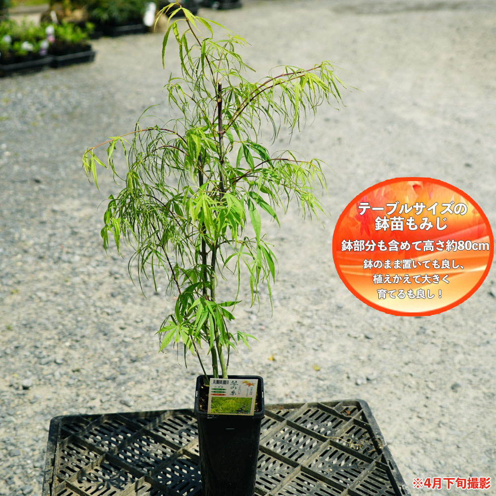 オオモミジ系で葉に深く切れ込みが入り、太目の糸葉で、糸をたらしたような個性的な葉をしています。